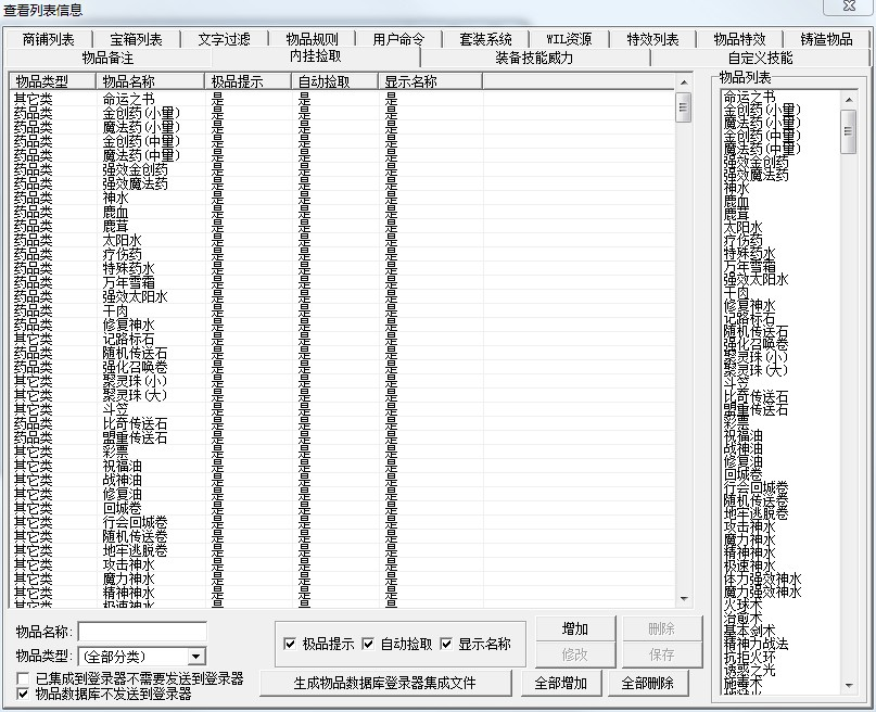 可根据自己版本的游戏设定进行设置 极品提示 与 自动拾取、显示名称的相关内容。